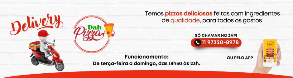 Na Dah Pizza, acreditamos que a pizza é mais do que apenas uma refeição – é um momento de prazer compartilhado entre amigos e família. É por isso que nos esforçamos para proporcionar um serviço excepcional, onde cada pedido é preparado com cuidado e atenção aos detalhes.